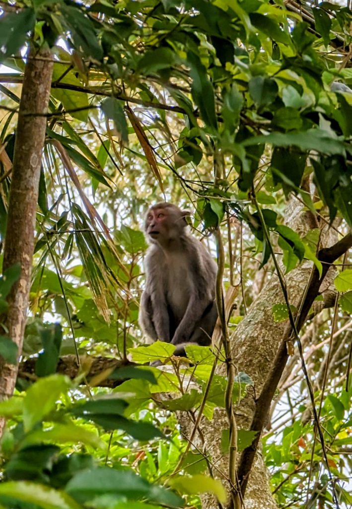 Unsere anfangs noch schlechte Laune verfliegt im Nu, denn die Strecke ist einfach fantastisch. Im Südosten der Insel gibt es keine durchgängige Küstenstraße. Mehrmals müssen wir in die Berge. Dabei fahren wir durch üppige, dschungelartige Vegetation und werden neugierig von Affen beäugt.