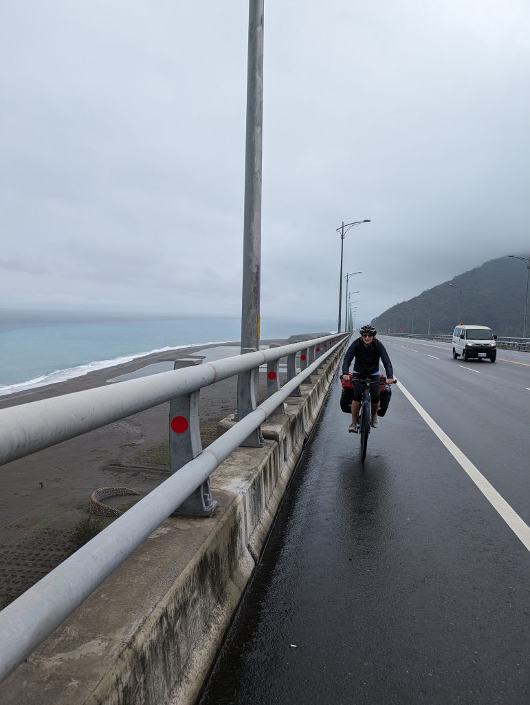 Der Himmel ist bedeckt als wir am Morgen aufbrechen, aber noch ist es trocken. Am Stadtrand von Taitung passieren wir einen Militärflugplatz von dem minütlich unter ohrenbetäubendem Lärm Kampfjets in den Himmel starten und schnell hinter der grauen Wolkendecke verschwinden. Offensichtlich rüstet man sich hier für den Ernstfall.