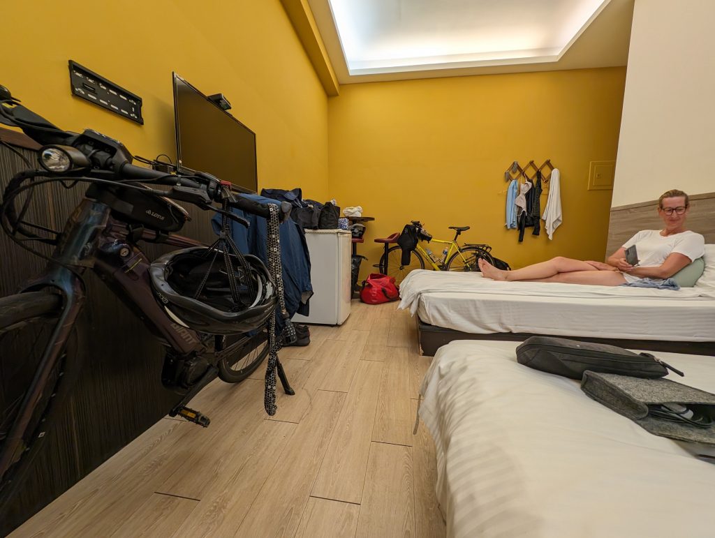 Wir sind heute wieder „ab vom Schuss“ und die Stimmung bekommt einen gehörigen Dämpfer, als wir anfangen, uns um die Nahrungsaufnahme zu bemühen. Die Internetrecherche lässt nichts Gutes vermuten. Die beiden Teenager, die uns beim Check-in empfangen haben, versuchen noch telefonisch etwas zu organisieren aber wir erkennen schon am Tonfall, dass es eher schlecht aussieht. Sie sprechen kaum Englisch und teilen uns über eine Sprach-App mit, dass es im Umkreis nichts gibt. Wir müssten dann wohl nochmal mit dem Bus los. Da es immer noch in Strömen regnet, für uns eine Horrorvorstellung!