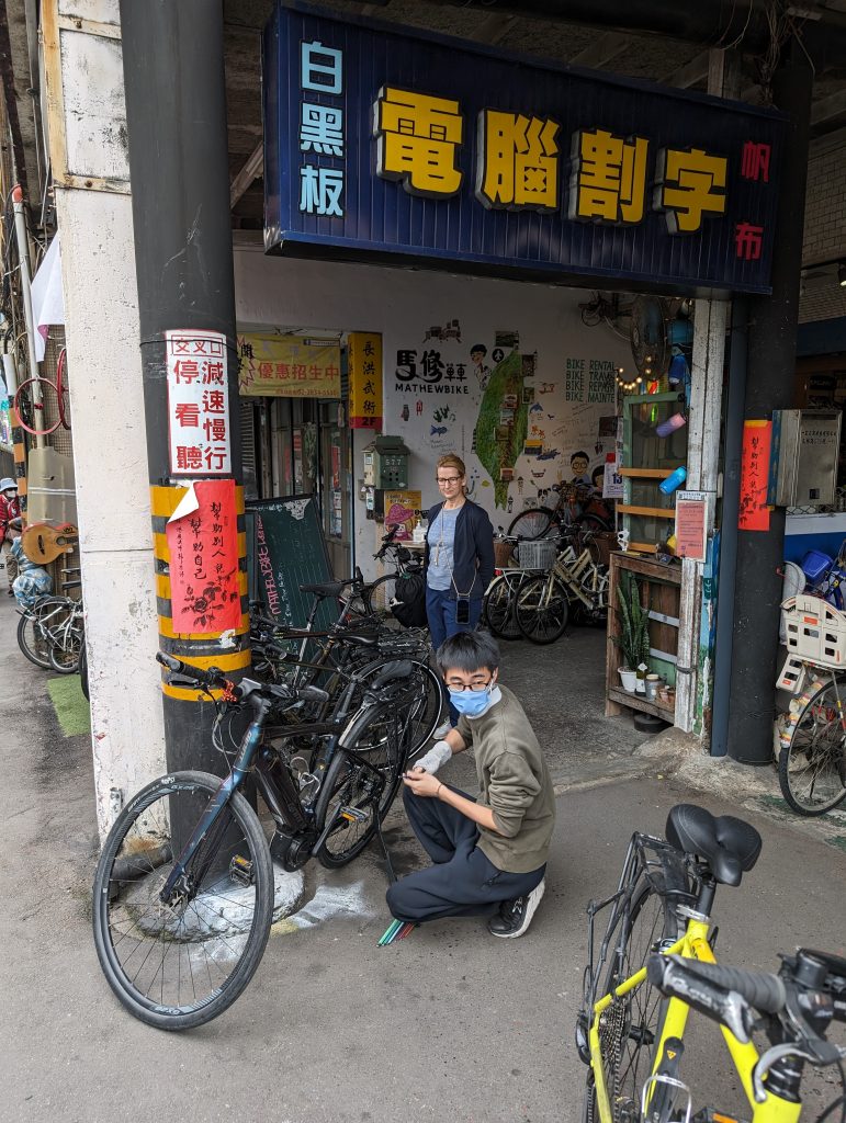 So erreichen wir schließlich unsere U-Bahn, die uns in den Stadtteil Shilin bringt, wo wir unsere Räder in Empfang nehmen. Kerstin wie immer E-Bike und ich ein Trekkingrad. Helm, Packtaschen, Ersatzschläuche und Werkzeug haben wir gleich mitgebucht.