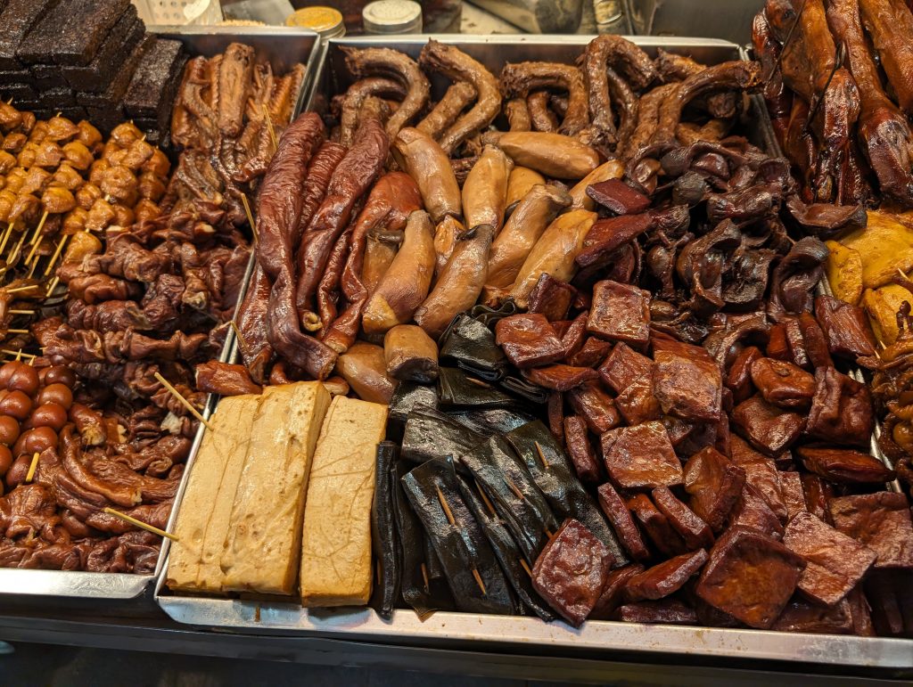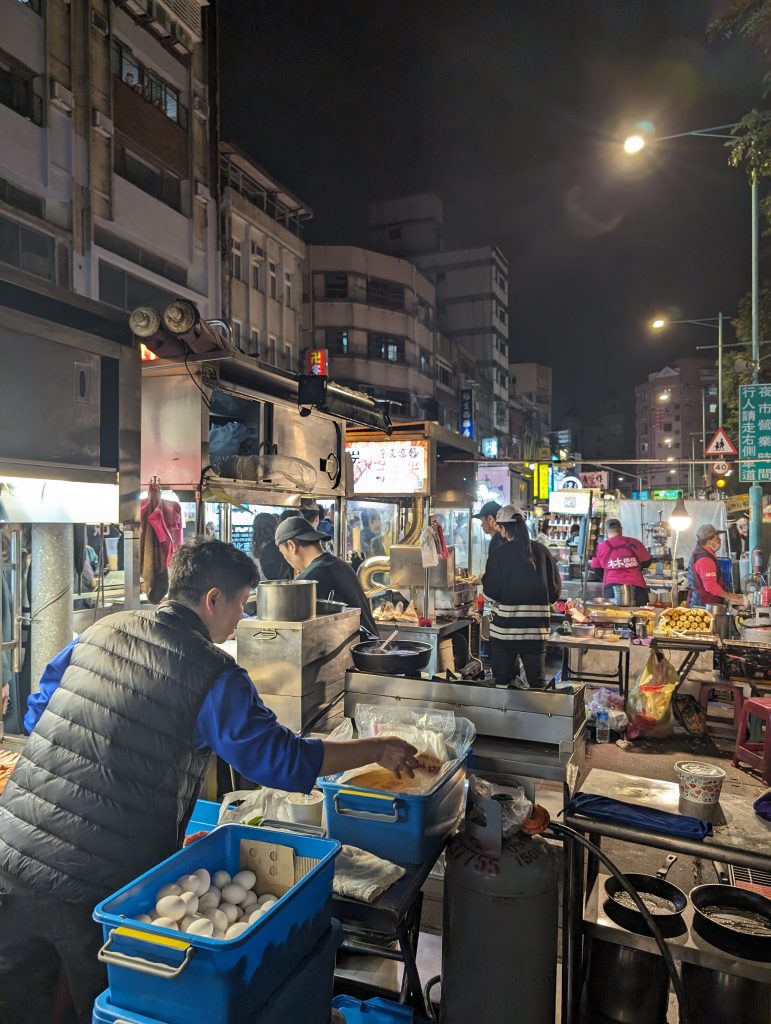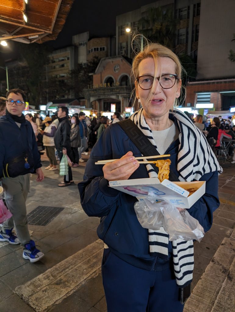 Dass der Tag dennoch ein schönes Ende findet, liegt vor allem an unserem abendlichen Ausflug zum Nachtmarkt. Hier steht eine Garküche neben der anderen und die Auswahl an Köstlichkeiten ist kaum überschaubar. Die taiwanesische Küche gilt als eine der besten der Welt und das Essen hat für die Menschen eine sehr große Bedeutung. Wir begrüßen und mit „wie geht’s?“ und das taiwanesische Pendant dazu ist „hast du schon gegessen?“. Trotzdem haben viele Wohnungen nicht mal eine Küche. Dass man sich auf der Straße verpflegt, ist vollkommen normal. Auch wir machen das und sind wirklich begeistert. Für kleines Geld futtern wir uns durch die Stände, probieren alles mögliche und in keinem Restaurant könnte es besser schmecken…