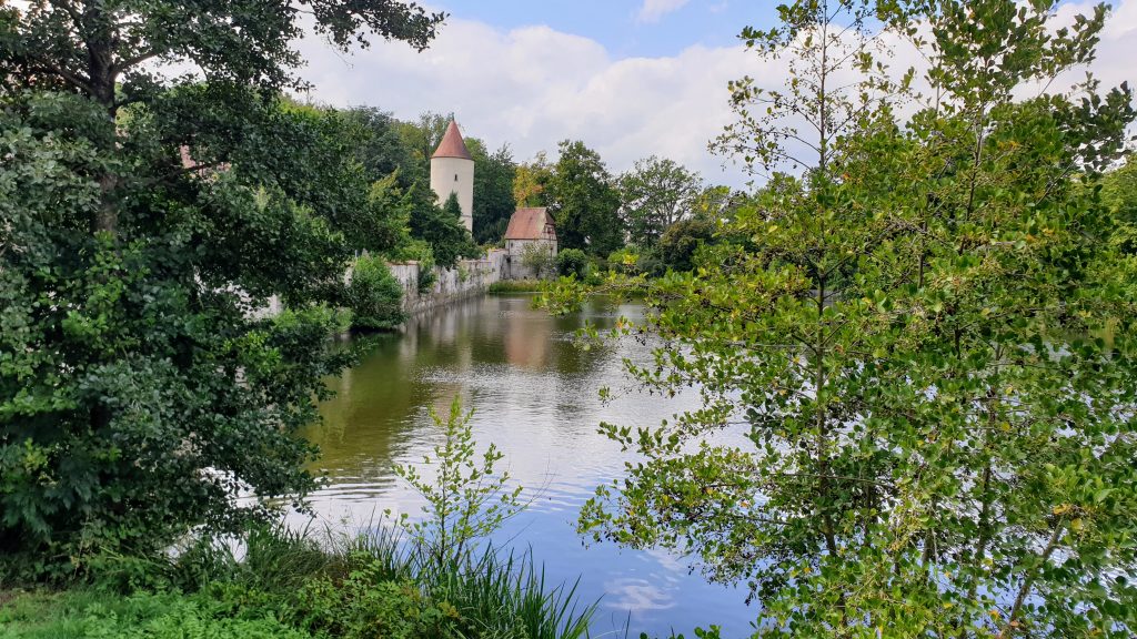 Zum Glück ist das auch heute nur eine kurze Episode.  Schon bald bewegen wir uns wieder abseits des Verkehrs auf kleinen, ruhigen Landstraßen. Nach dem Verlassen des Ries fahren wir erneut über den Kraterrand und dann hinab ins Tal der Wörnitz. Die letzten Kilometer entlang des Flusses nach Donauwörth sind wieder ein Genuss, der dafür sorgt, dass wir auch diese Etappe in sehr schöner Erinnerung behalten werden.