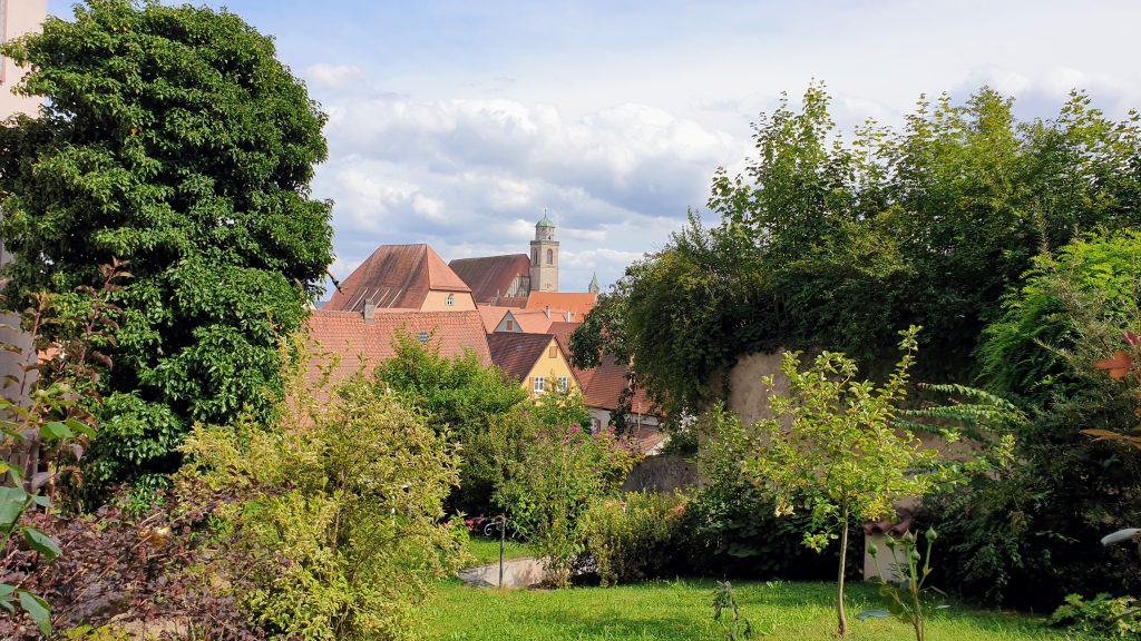 Die restliche Radstrecke ist mit 14 km sehr überschaubar und wir kommen bereits am frühen Nachmittag in Dinkelsbühl an und es zieht uns nach dem Einchecken gleich raus in die Stadt. Wollen doch mal sehen, ob der Focus mit seiner Auszeichnung als schönste Altstadt Deutschlands recht hat. Schließlich haben wir selbst mit den bisherigen Stationen Seligenstadt, Wertheim und Rothenburg ob der Tauber die Messlatte schon sehr hoch gelegt.