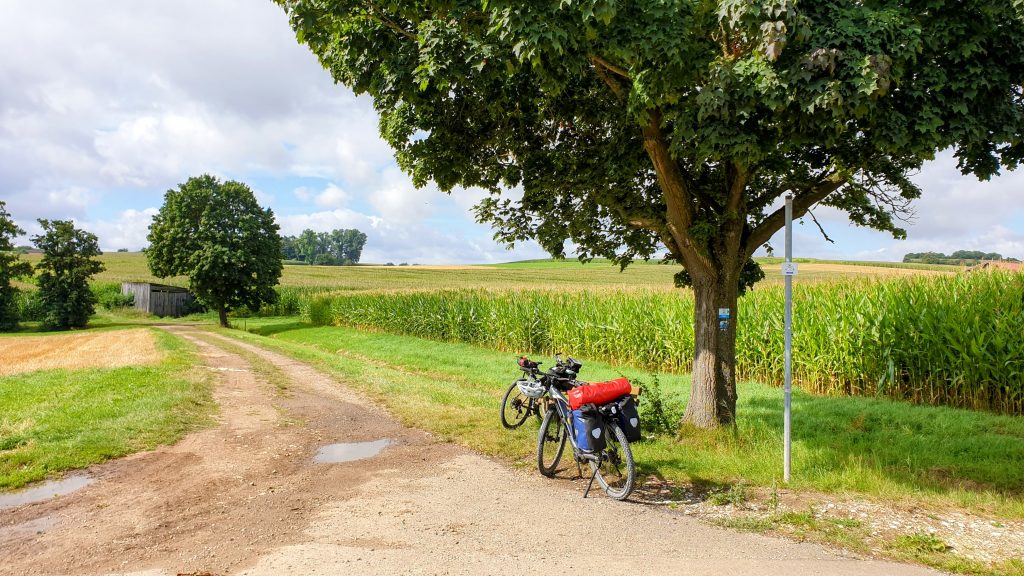 Gefühlt  gibt es hier einfach nichts außer jede Menge Gegend. Auch treffen wir kaum noch Radler. Für die meisten, die von Norden kommen, scheint in Rothenburg Schluss zu sein. Erst viel weiter südlich, im Voralpenland, nimmt der Radverkehr auf dem Radweg “Romantische Straße” wieder deutlich zu. Wir genießen die Stille abseits des Trubels der vergangenen Tage und wundern uns, dass wir selbst in den kleinen Dörfern, die wir durchfahren, kaum eine Menschenseele treffen.