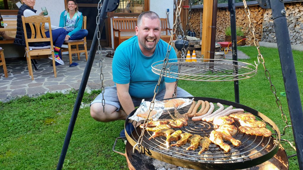 Markus, der Großmeister am Grill. Nach einem zähen Radtag freuen wir uns auf kühles Bier, leckeres Essen und eine schöne Geburtstagsfeier.