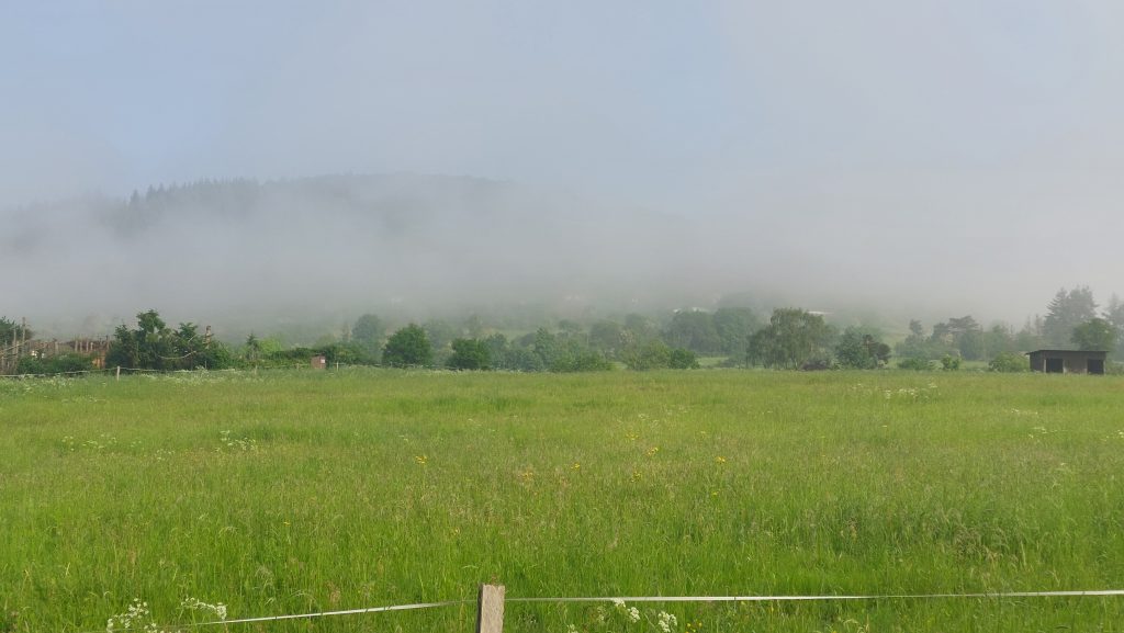 Der morgendliche Blick aus dem Fenster gleicht dem in eine Waschküche. Obwohl bereits 15 Grad, hängen überall noch Nebelfetzen. Auch für heute Nachmittag sind wieder Unwetter angesagt, also nicht allzu sehr trödeln!
