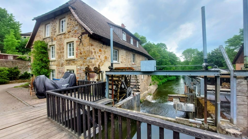 Auf dem Salzböderadweg nahe Lohra geht es dann aber nicht mehr. Die Wasservorräte sind schon seit einer Stunde wieder aufgebraucht und als ich den Biergarten an der Strecke sehe, kann ich nicht widerstehen. Ein großes, kühles alkfreies Weizen gibt neuen Schwung und die Wirtin ist so nett, mir die Trinkflaschen mit Wasser aufzufüllen. Damit schaffe ich sogar noch einen Abstecher, um die stark befahrene Hauptstraße zu umgehen.