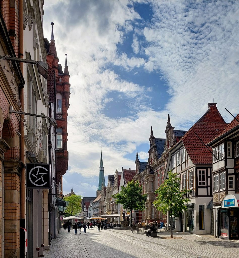 Meine Krise habe ich bald überwunden, die Laune bessert sich spürbar. Hin und wieder lässt sich die Sonne blicken und der stramme Wind entwickelt sich langsam zu meinem Freund. Er hat gedreht, kommt eher von der Seite und oft schiebt er mich sogar richtig an. Verbunden mit der mittlerweile recht flachen Landschaft sorgt er dafür, dass ich die letzten Kilometer in das schöne Weserstädtchen Hameln segeln kann.