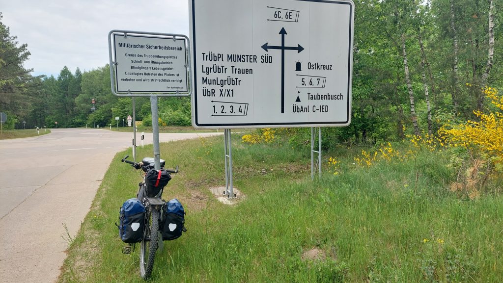 Auch wenn ich mir die Zeit zum Besuch des Dokumentationszentrums nicht nehme und nur im weiten Gelände mit den Massengräbern unterwegs bin, ist die Unbekümmertheit der letzten Tage für den Rest der Etappe verloren. 2 Truppenübungsplätze, Bergen-Hohne und Munster liegen auch noch auf meinem Weg. Ich sehe Panzer, die verladen werden und während der langen Fahrt über die Panzerstraße von Munster höre ich in der Ferne die Kanonen donnern.