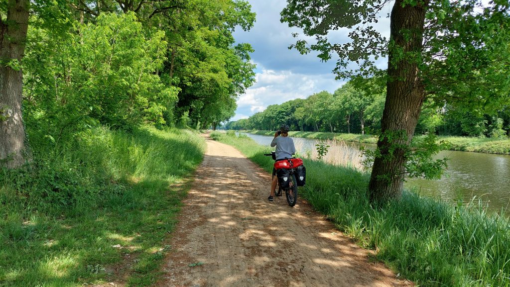 Nach einem kurzen Stück an einer stark befahrenen Bundesstraße erreichen wir die nächste Wasserstraße, den Elbe-Lübeck-Kanal. Er ist deutlich kleiner und führt über weite Strecken durch Wälder, die als Naturschutzgebiete ihre natürliche Schönheit behalten haben. Anderen Menschen begegnen wir kaum. Hier lang zu radeln ist ein Genuss!