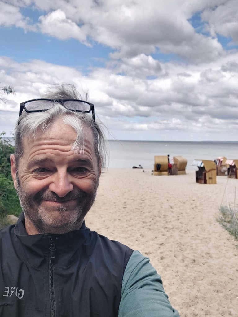 Dann am Timmendorfer Strand ist es es soweit: Wir erreichen die Ostsee! Ich bin seit einer Woche unterwegs und etwa 620 km gestrampelt. Nach einer so langen Strecke am Meer anzukommen und diese offene Weite vor sich zu haben, ist immer wieder ein erhebendes Gefühl. Den Rahmen hätte ich mir allerdings auch etwas anders vorstellen können. Timmendorfer Strand am Vatertag ist eben Timmendorfer Strand am Vatertag. Verglichen mit den oft fast menschenleeren Abschnitten der letzten Tage ein kleiner Kulturschock.