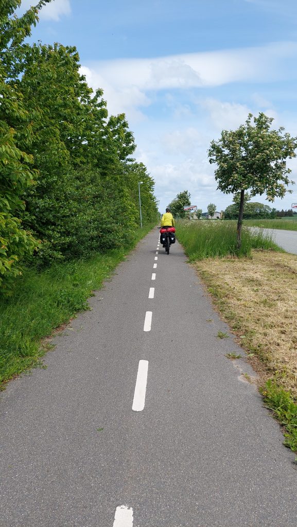 Dafür haben wir uns das richtige Wetter ausgesucht, denn der Rückenwind ist eine wahre Pracht. Ohne viel treten zu müssen, fliegen wir die meiste Zeit nur so durch die weitgehend menschenleere Landschaft. Hinzu kommt die perfekte Fahrradinfrastruktur. Entweder sind wir auf gut ausgebauten Radwegen unterwegs oder auf Landstraßen fast ohne Verkehr. Zudem sind die dänischen Autofahrer sehr rücksichtsvoll gegenüber Radlern. Überholt wird langsam und mit viel Abstand – ganz anders als in Deutschland.